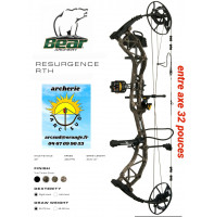 All-new for 2022, the Resurgence RTH is a performance bargain with the all-new Bear Archery DHC 80% hybrid cam system. The all new 2022 DHC hybrid cam system offers Bear's signature smooth draw cycle with an 80% let-off. It also features a solid back wall to ensure consistency shot after shot. This lightweight 32” axle-to-axle bow offers class leading stability with a 6 1/4’’ brace height. The new KillerWave limb dampeners help eliminate vibration and improve accuracy in every shot. The Bear Archery Resurgence RTH offers blistering arrow speeds up to 335 feet per second; perfect for 3D archery and bowhunting. The Resurgence RTH offers an incredible level of adjustability and accommodates draw lengths from 25 1/2’’ to 31”. This bow is available as either a 45 lbs. – 60lbs. or 55lbs. – 70lbs. bow and comes ready-to-hunt with Trophy Ridge accessories. The Resurgence RTH comes equipped with a Trophy Ridge Joker 4-pin sight, 5-spot quiver, Blitz stabilizer, Whisker Biscuit V, peep sight, and D loop. Experience 2022’s most value packed and highly-adjustable bow from Bear Archery.